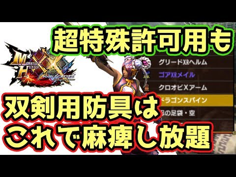 Mhxx実況 麻痺し放題な双剣のオススメ装備5点 超特殊許可用テンプレも モンハンダブルクロス Clipmega Com